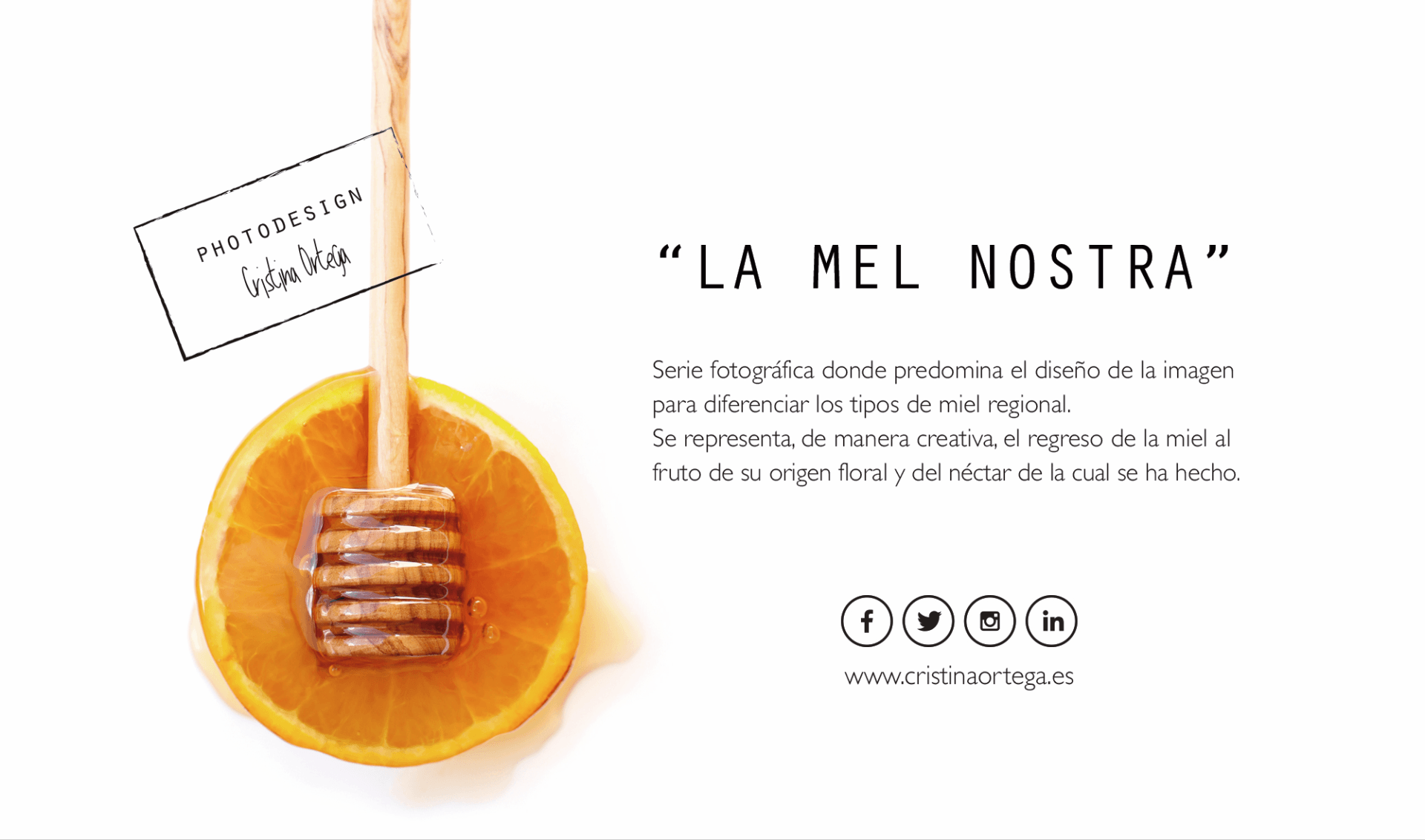 "Una colección de fotografías donde se representan, de manera creativa, los tipos de miel regional mediante el regreso de la miel al fruto de su origen".
